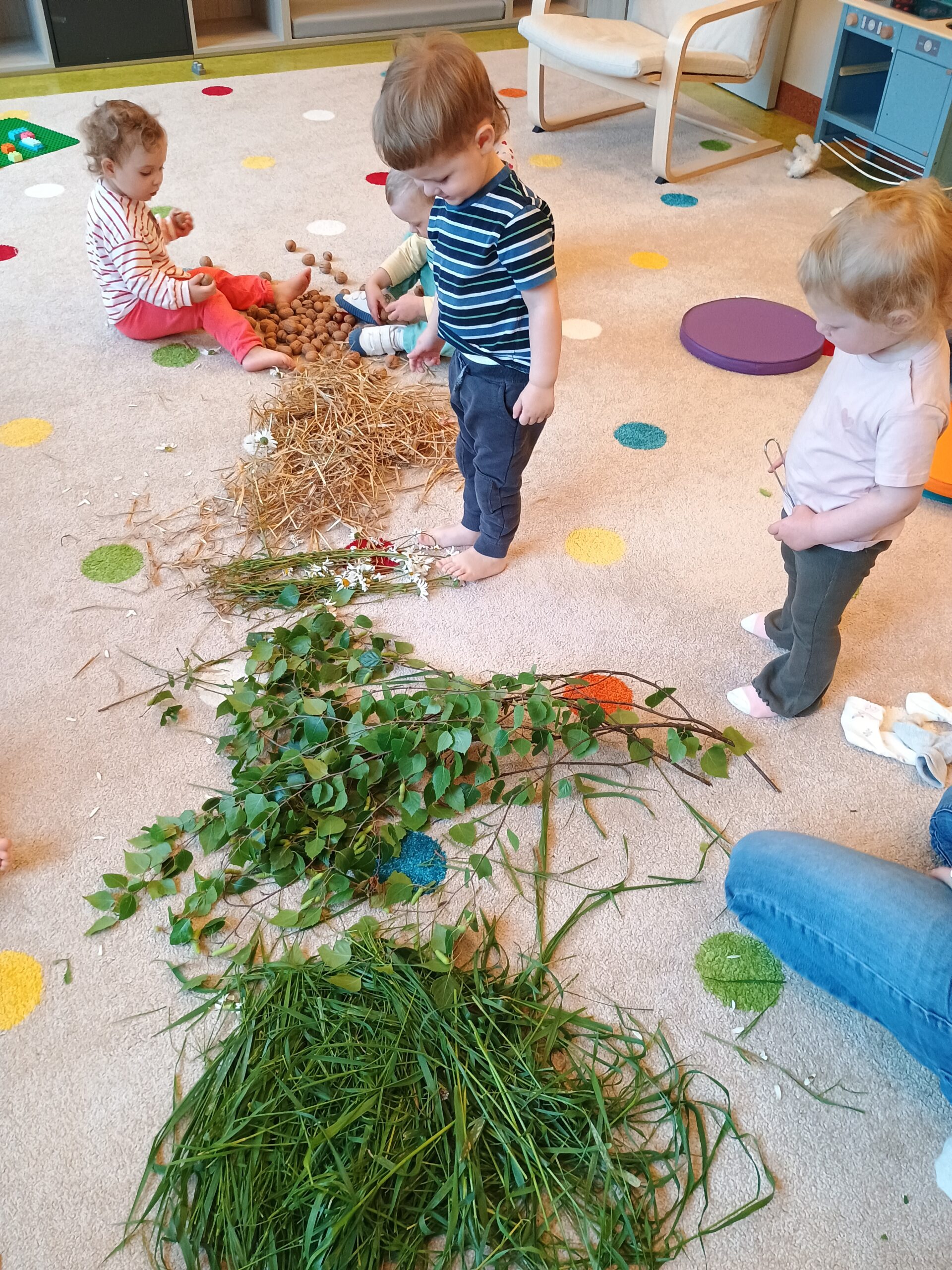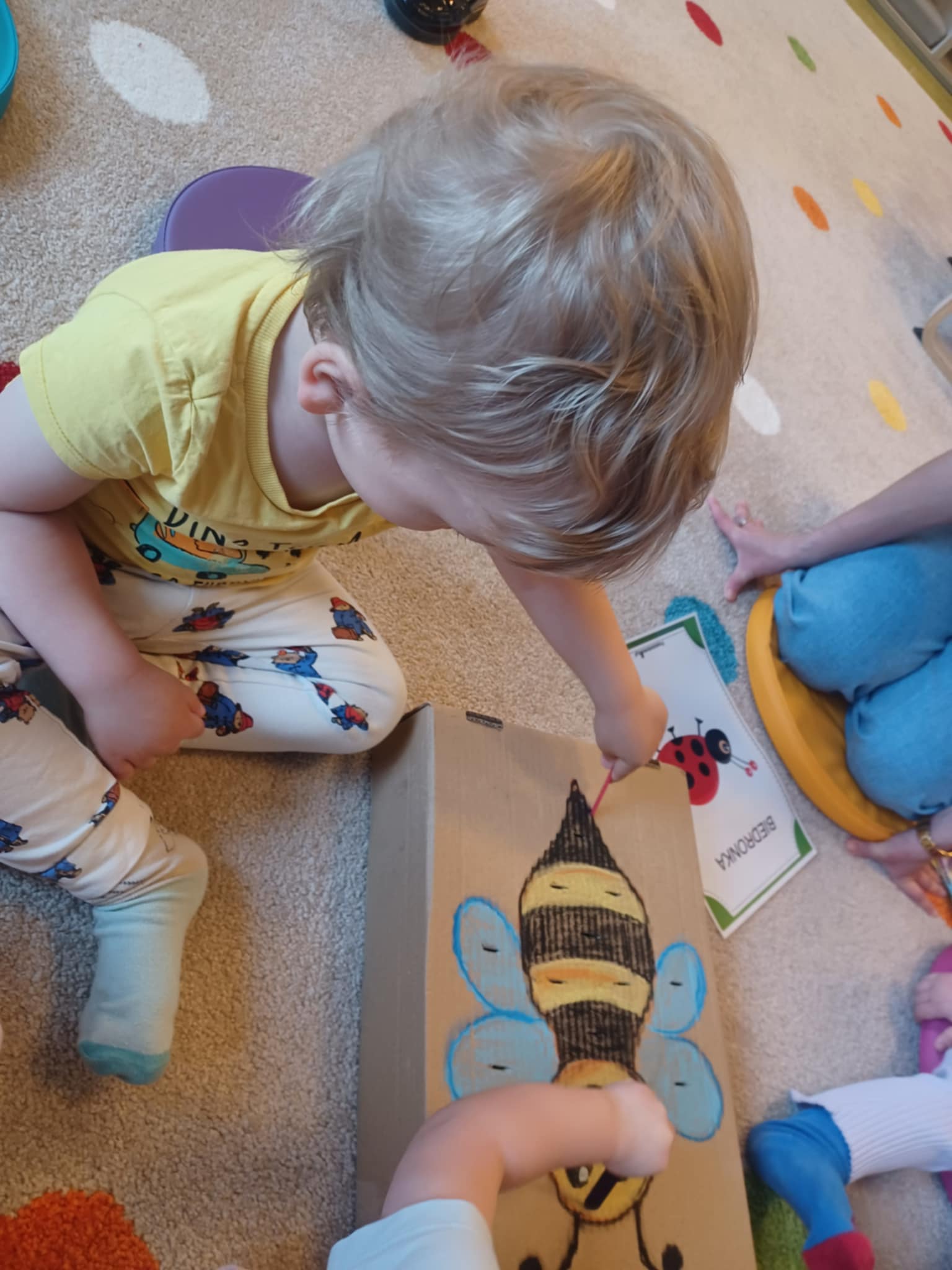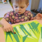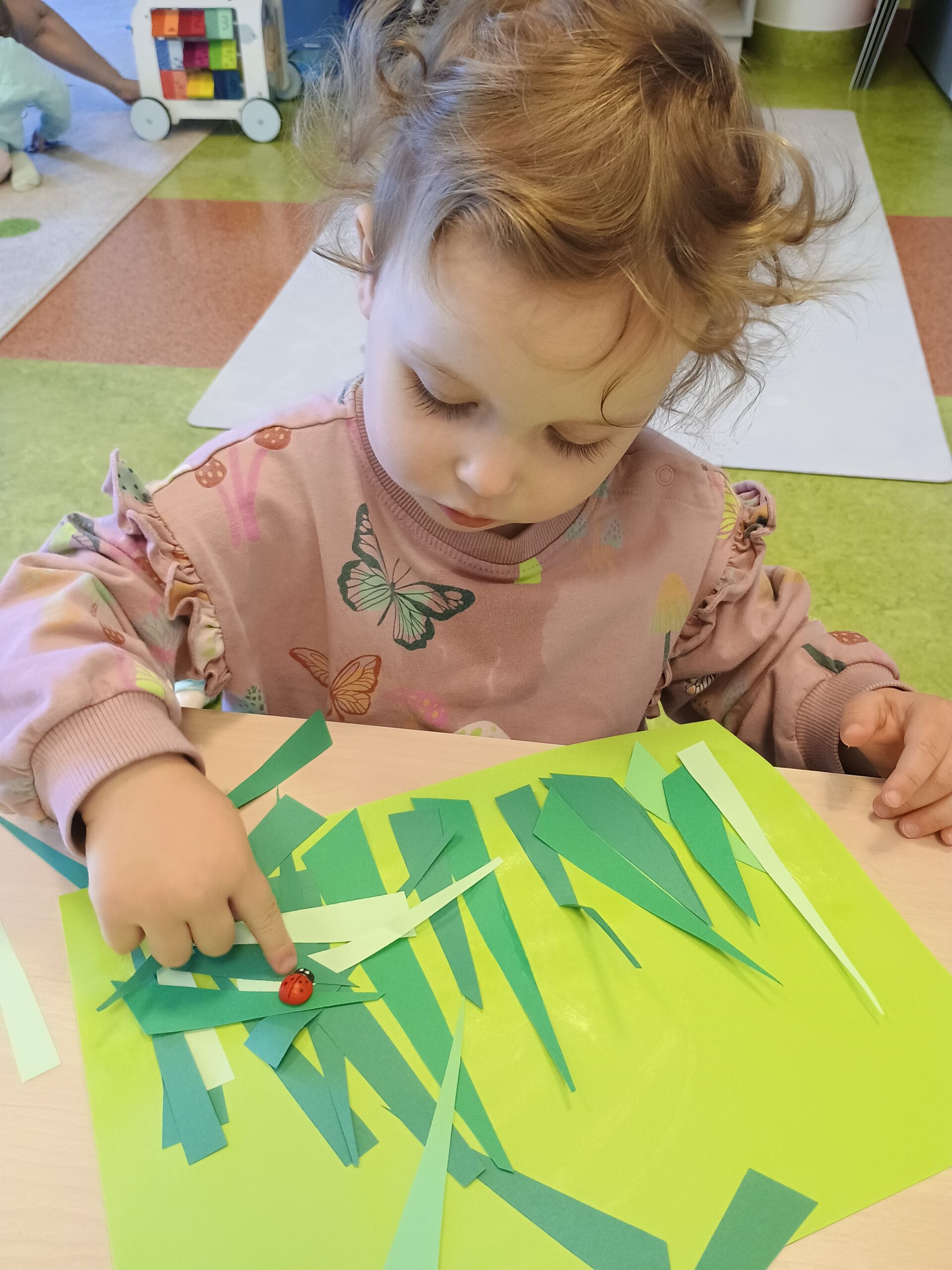 Zajęciom towarzyszyły aktywności wspierające motorykę małą – chwytanie, przyklejanie, malowanie czy wydzieranie, a także tworzenie kolorowych prac plastycznych inspirowanych łąką i jej mieszkańcami.