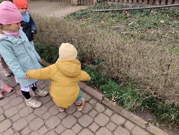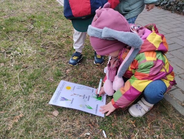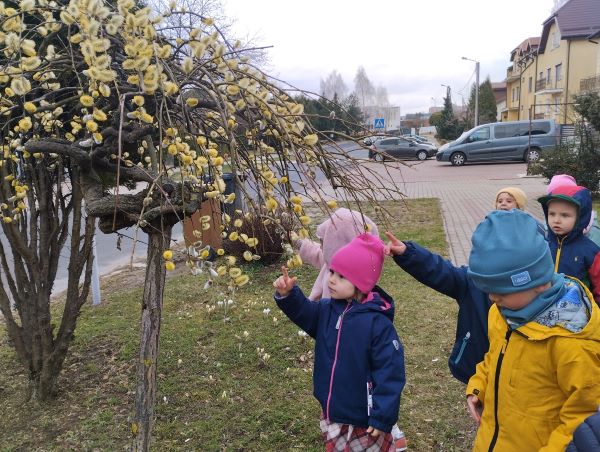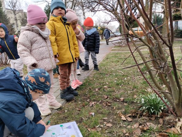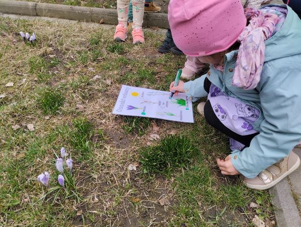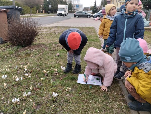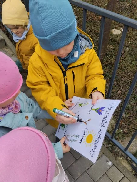W grupie Wiewióreczek zawitała wiosna – pełna radości, odkryć i koloru! Nasze przedszkolaki nie tylko wyczekiwały pierwszych promieni słońca, ale również aktywnie ich wypatrywały. Podczas spaceru edukacyjnego dzieci uważnie obserwowały zmieniającą się przyrodę. Z ogromnym zainteresowaniem rozpoznawały pąki na drzewach i krzewach, zieloną trawę oraz ptaki przygotowujące się do budowy gniazd. W osiedlowych ogródkach Wiewióreczki wypatrzyły także pierwsze wiosenne kwiaty – krokusy, przebiśniegi i szafirki. Każde odkrycie wywoływało radość i pobudzało dziecięcą ciekawość, stając się pretekstem do rozmów i zadawania pytań.