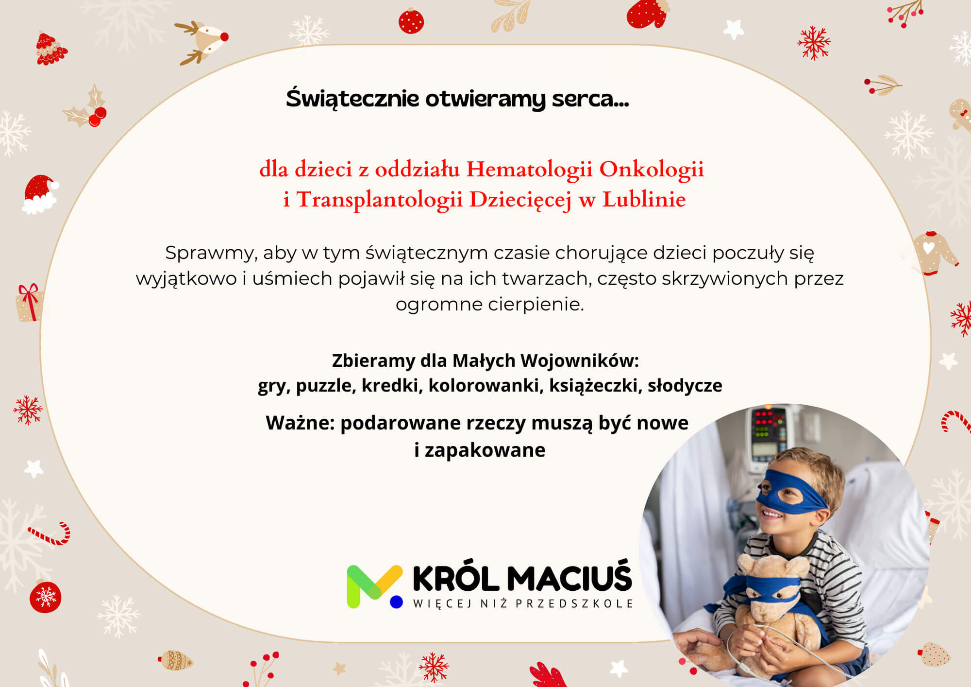Grudzień to idealny moment na kreatywne pomysły! Serdecznie zapraszamy do udziału w XIV Międzyprzedszkolnym Konkursie Bożonarodzeniowym „Aniołek na gwiazdkę” organizowanym przez Przedszkole Król Maciuś.