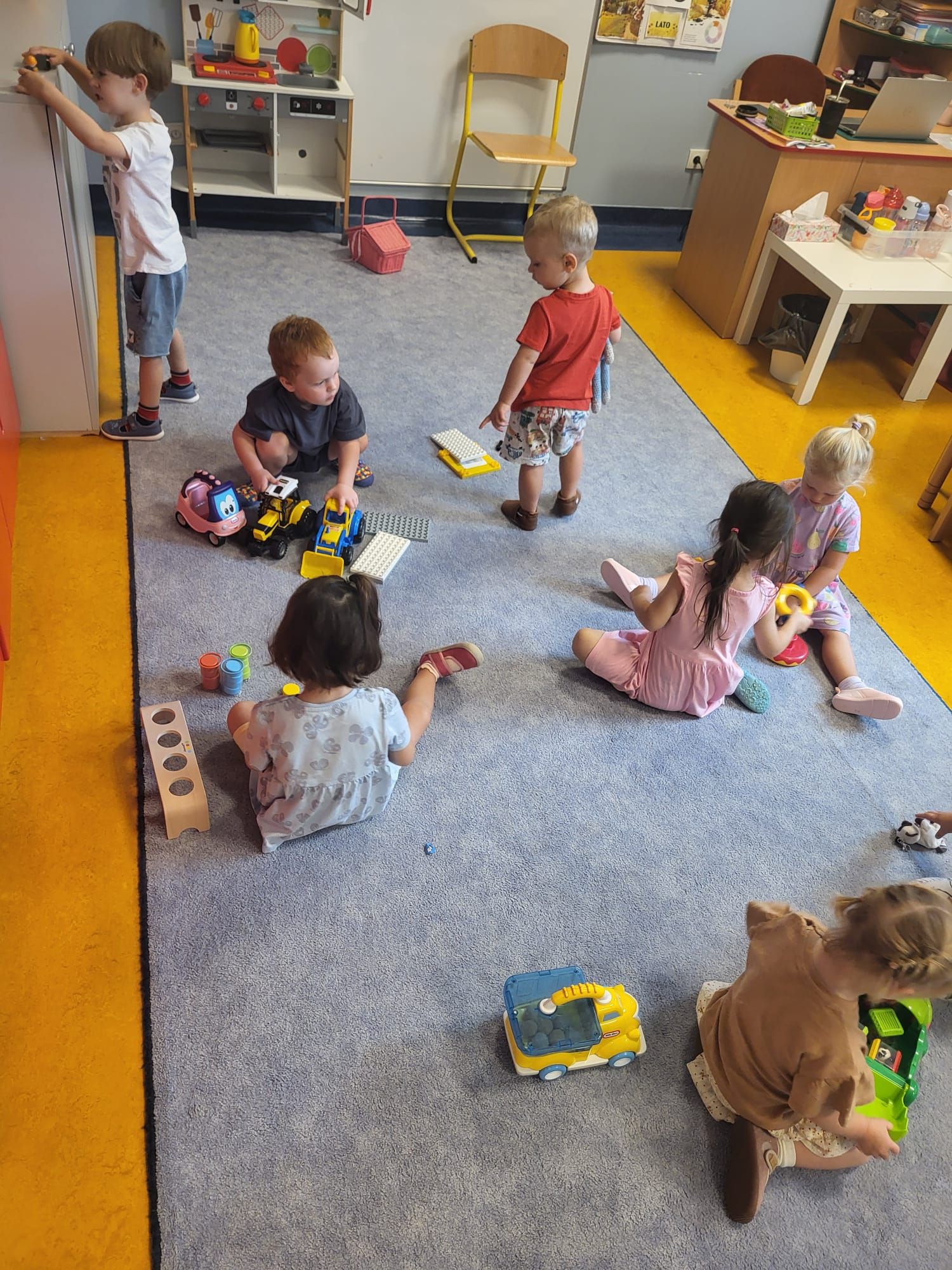 Nasze najmłodsze przedszkolaki świetnie odnajdują się od pierwszych dni. Odkrywają salę, poznają rytm dnia i zasady, a my budujemy spokojne rytuały: poranny krąg, czas na zabawę, posiłki i odpoczynek. Jest ciekawie i wesoło, ale też bezpiecznie i przewidywalnie.