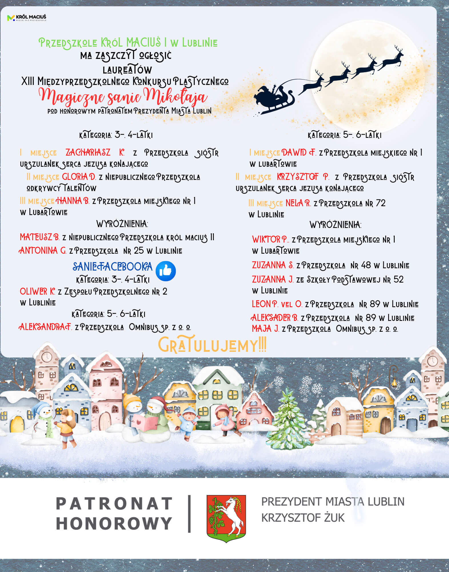 Wyniki XII Bożonarodzeniowego Konkursu Plastycznego „Magiczne sanie Mikołaja”